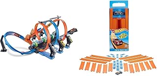 Hot Wheels FTB65 - Action Korkenzieher Crash Trackset und Rennbahn mit 3 Loopings & BHT77 Track Builder Gerade Rennbahn Set, Trackset Zubehör mit ca. 4,5 m Länge und 18 Trackverbindungen