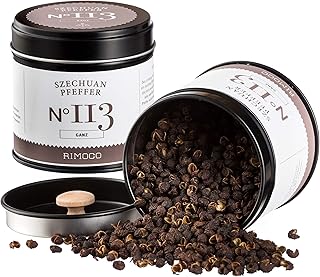 Rimoco N°113 Szechuan Pfeffer ganz - pfeffrig scharf, zitronig & erfrischend, ganze und getrocknete Pfefferkörner | Bio Anbau (DE-ÖKO-007) | 40g in eleganter Gewürzdose mit Aromadeckel