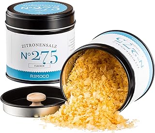 Rimoco N°275 Bio Zitronensalz - feinste Salzflocken mit fruchtigem Zitronenabrieb (Meersalz, Zitrone und Kurkuma) | Bio Anbau (DE-ÖKO-007) | Inhalt: 60g in eleganter Gewürzdose mit Aromadeckel