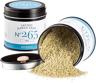 Rimoco N°265 Grünes Hawaii Salz grob (Hawaiian Bamboo Jade Sea Salt) - Meersalz mit biologisch-organischem Bambusblätterextrakt veredelt | Inhalt: 120g in eleganter Gewürzdose mit Aromadeckel