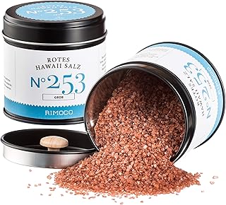 Rimoco N°253 Rotes Hawaii Salz grobkörnig - Das rote Gold der Vulkaninseln, veredelt mit der stark roten eisenoxidhaltigen vulkanischen Tonerde Alaea | 120g in eleganter Gewürzdose mit Aromadeckel