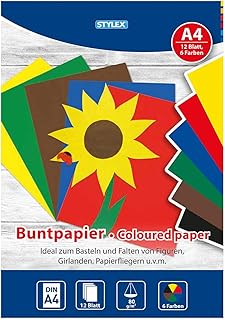 Stylex 42910 - Buntpapier im Heft, ungummiert, DIN A4, 12 Blatt, 80 g/m², sortiert in 6 verschiedenen Farben, ideal zum Basteln und Falten von Figuren, Girlanden, Papierfliegern