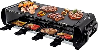 Syntrox Germany Raclette Liestal, 8 Personen, 8 Pfännchen, 4 Grillplatten/heißer Stein, antihaftbeschichtet, 1200W