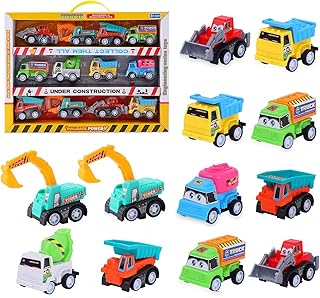 Herefun Fahrzeuge Spielzeug, 12 Stück Mini Auto Zurückziehen Spielzeug Auto, Mini Bagger Lastwagen Baufahrzeuge Cars, Sand Kinder Spielzeug Geschenk für Kindertag, Geburtstag (Baufahrzeuge)