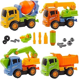 deAO abnehmbar Baufahrzeuge Spielset – Set bestehend aus 4 Baufahrzeuge und einem Schraubenzieher