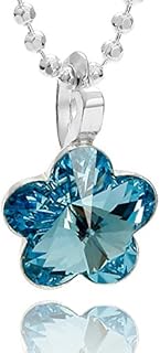 Kinderkette Mädchen Kette Silber 925 Swarovski Elements Blume Anhänger Hell-blau Längen-verstellbar Satin-Beutel Kommunion Geschenk