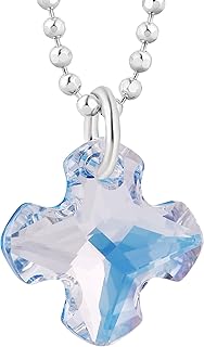 Kinderkette Mädchen Jungs Kette Silber 925 Swarovski Elements Kreuz-Anhänger Hell-blau Längen-verstellbar Geschenk zur Taufe