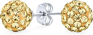 Runde Einfache Grundlegende Golden Pave Kristall Disco Kugel Ohrstecker Frauen Für Teen 925 Sterling Silber 8Mm