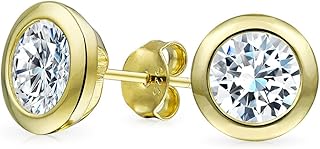 Runde Solitär AAA CZ Zirkonia Lünette Ohrstecker für Frauen Männer vergoldet Sterling Silber mehr MM Karat Größen