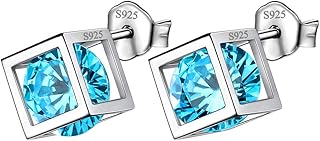Aurora Tears 925 Sterling Silber Birthstone Halsketten Ohrstecker Geschenke Quadrat Birthstone Anhänger für Frauen und Mädchen