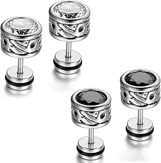 4 PCS Edelstahl Gestüt Stecker Ohrringe Ohrstecker Ohrhänger CZ Zirkon Zirkonia Silber Schwarz Weiss Retro Totem Runde Kreis (2 Paar) Herren