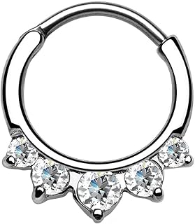 BCR Piercing Ring Universal Klemmring mit Zirkonia Kristall Klemm Kugel für Septum Brust Tragus Helix Nase Lippe Ohr Intim Nippel