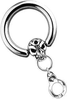 Piercing Ring Hufeisen Handschellen mit Anhänger und Totenkopf für Septum Brust Tragus Helix Nase Lippe Ohr Intim Nippel Silber 2,0 x 12mm