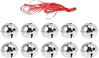 Amosfun 20pcs Mini Christmas Bells Christmas Jingle Bells with Star Cutouts Christmas Tree Decorations Ornaments for Christmas Holiday Craft Decorations with 10m Ribbon 5cm Silver