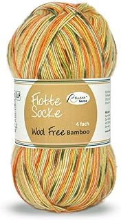 Rellana Flotte Socke Wool Free Bamboo 100 g Sockenwolle Vegan mit Bambus Sommersocken Stricken (1422 gelb-orange-grün)