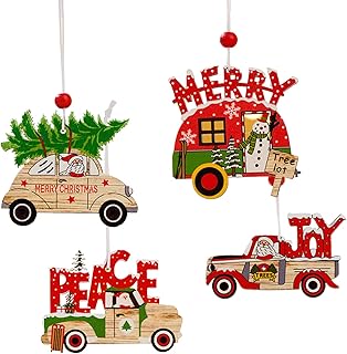 Christmas Tree Decoration Wooden Christmas Tree Hanging Decorations WeihnachtsbaumanhäNger Holz Christmas Wooden Car Shape Pendant,Snowman,Santa Claus,Christmas Tree,Various Christmas Elements(4pc)