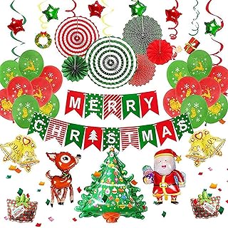 JeVenis Set von 42 Weihnachten Luftballons Dekoration, Christmas Banner Wirbel Hängende deco Weihnachtsmann Folienballon Christmas Decoration Christmas Party Supplies