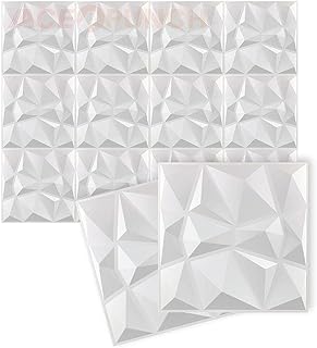 Acepunch New 12 Stücke Weiß 30CM X 30CM Strukturierte PVC wasserdicht-3D-Wandpaneele mit Diamantdesign für die Inneneinrichtung von Home Office oder Studio AP1216