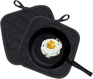 Topflappen 2er Set, KANOSON Baumwolle Stoff Topflappen Hitzebeständige Untersetzer Topflappenmatten Ofenhandschuhe, Waschbare Hot Pads Topflappen zum Küche Kochen Backen - Schwarz