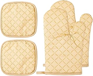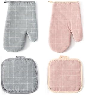 GREVY Baumwolle Ofenhandschuhe 32 cm, mit 2 Hitzebeständige Topflappen (4er Set')