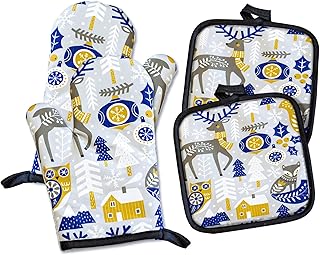 Weihnachten Ofenhandschuhe und Topflappen 2-teiliges Set Hitzebeständige Anti-Rutsch Topfhandschuhe Baumwolle, Topflappen Hot Pad quadratisch Geeignet für Kochen Backen Grillen
