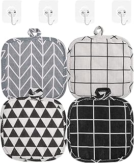 ansd 4 Stück topflappen Set, 250° Hitzebeständige Quadratischer Topflappen,18 x 18 cm topflappen ofenhandschuhe Set,Baumwolle Set Topflappen,Mit 4X Nicht markierendem Haken,fur Backen, Kochen