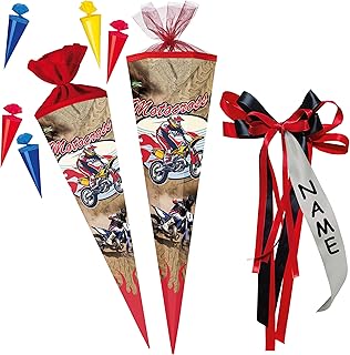 alles-meine.de GmbH stabile Spitze - aus Kunststoff - für Set _ Schultüte + 5 kleine Zuckertüten - Motorrad - Motocross - Enduro - 22 / 35 / 50 / 70 / 85 cm - incl. individueller..
