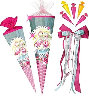 alles-meine.de GmbH stabile Spitze - aus Kunststoff - für mit _ 3-D Effekt - Glitzer ! _ Set _ Schultüte + 5 kleine Zuckertüten - Flamingo & Blumen - gepunktet - 70 / 85 cm -..