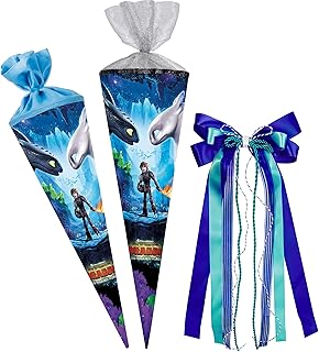 alles-meine.de GmbH Schultüte - Dragons - Drachenzähmen leicht gemacht - 50 cm - rund - mit Tüllabschluß - Zuckertüte - mit / ohne Kunststoff Spitze - Nestler - Mädchen Junge..