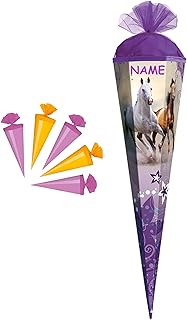 alles-meine.de GmbH personalisierte 3D LED Licht & Leucht - Schleife - passend für Set _ Schultüte + 5 kleine Zuckertüten - Pferde - Wildpferde & Blumen - 22 / 35 / 50 / 70 /..