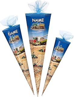 alles-meine.de GmbH personalisierte 3D LED Licht & Leucht - Schleife - passend für Schultüte - Landmaschinen - Traktor + Mähdrescher - 50 / 70 / 85 cm - incl. Name - Zuckertü..