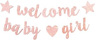 Babyparty-Dekoration "Welcome Baby Girl" Banner Glitzer Mädchen Babyparty Wimpelkette Geburtstagsparty Hängedekorationen Partyzubehör Roségold