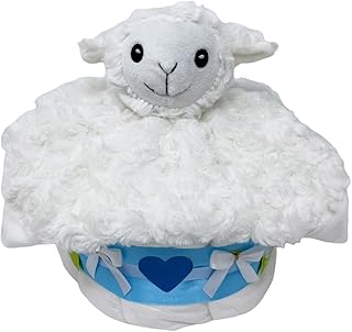 Kleine Windeltorte Schmusetuch Schäfchen Finn in blau. Geschenk zur Geburt, Taufe oder Babyparty für Mädchen oder Jungen. (Blau / Finn)