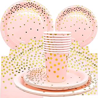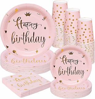 LUTONG Larchio Rosa Geburtstagsparty-Geschirr, rosa und Gold Happy Birthday Teller und Servietten, Pappbecher für Mädchen und Frauen, Geburtstagsparty-Zubehör