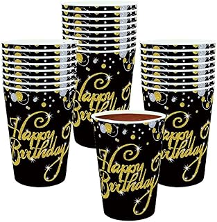 Trgowaul 50 Stück 340 ml Happy Birthday Pappbecher Gold Einweg-Trinkbecher mit Happy Birthday Design für Männer und Frauen Geburtstagsparty Supplies