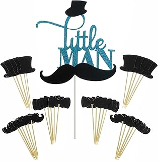 JCKEL Shxstore Tortenaufsatz mit Mini-Schnurrbart, Hut, Schleife, Cupcake-Picks für Babyparty, Geburtstagsparty, Dekoration, Zubehör, 31 Stück