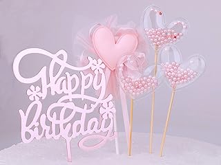 Restards Kuchendekoration mit rosa Herzen, 5 Stück, niedliche Herz-Kuchenaufsätze, rosa Party-Dekoration für Geburtstagsparty, Babyparty