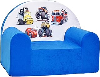 millybo Kindersessel Mini Sessel Kindermöbel Kinderstuhl Kindersofa viele Muster (C14-blau Trucker)