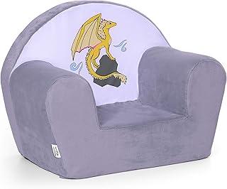 MuseHouse - Kindersessel aus Plusch mit Drachenmotiv. Kindersofa Märchenfigur. Kuschelig weicher Schaumstoff. Kinderstuhl zum Spielen. Farbenfroh mit Spielmotiv
