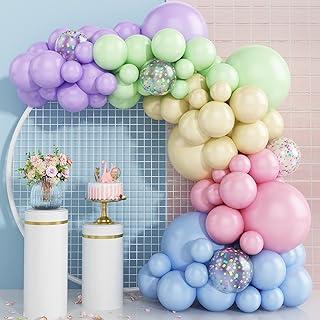 GRESATEK Fünf Farben Ballon Girlande Set, 110 Stück Blaues Pulver Gelb Grün Lila Latex Pastell Luftballon mit Konfetti Ballon Geburtstag Deko Hochzeit Verlobung Geburtstag Baby Shower Party Dekoration