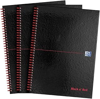 Oxford „Black n‘ Red“-Notizbuch, A5, Hardcover, Draht-gebunden 3er-Pack A5