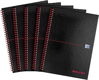 Oxford „Black n‘ Red“-Notizbuch, A4, Hardcover, Draht-gebunden 5er-Pack A4 schwarz/red