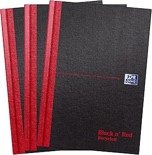 Oxford Black n' Red, Notizbuch, A5, Hardcover, recycelt, gebunden, liniert, 3 Stück