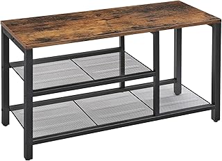 VASAGLE Schuhbank, Schuhregal, Schuhschrank mit engmaschigen Gitterablagen, mit Fach für Stiefel, Flur, Wohnzimmer, Schlafzimmer, einfacher Aufbau, stabil, Industriestil, vintagebraun-schwarz LBS77BX