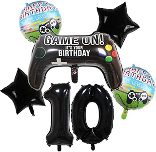DIWULI großes Gamer Luftballon Set, XL Zahl 10 Zahlen-Ballon schwarz, Gamepad Folien-Ballon Happy Birthday Gaming, 10. Kinder-Geburtstag Junge, LAN-Party, Motto-Party, Dekoration, Folien-Luftballon