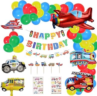 Herefun Bagger Kindergeburtstag Deko, Geburtstagsdeko Junge, Happy Birthday Deko Luftballons Flugzeug Zug Polizeiwagen Schulbus Yacht Feuerwehrauto Ballons Kindergeburtstag Dekoration