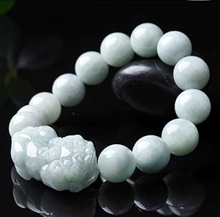 Deykhang Feng Shui Jade Pixiu Reichtum Armband Wohlstand Piyao Stretch-Armband 13mm Burma Fei Cui Jade Talisman Stein Attract Geld Viel Glück für Männer Frauen