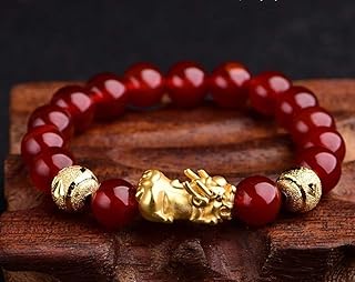 Deykhang Feng Shui Pixiu Reichtum Armband Rare Pure Red Agate Natürliche Chakra Edelstein Quarz-Korn-Attract Geld Kreativität Glück Glück Talisman Frieden Prospertity,12mm