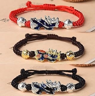 Feng Shui Farbwechsel Pixiu Piyao Armband Vietnamesisch Hartgold Talisman Adjustable Amulett Armband Reichtum Armband Hand geschnitzt abwehren, die bösen Geister ziehen Geld Good Luck,3pcs tricolor