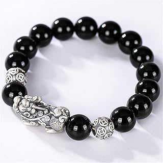 Schwarz Obsidian Feng Shui Reichtum Armband Pixiu Armband Geschenk für Frauen Männer Pixiu/Piyao Amulett Armband Wohlstand mit S925 reinem Silber Robust Langlebig Ziehen Sie Glücksgeld an,10mm
